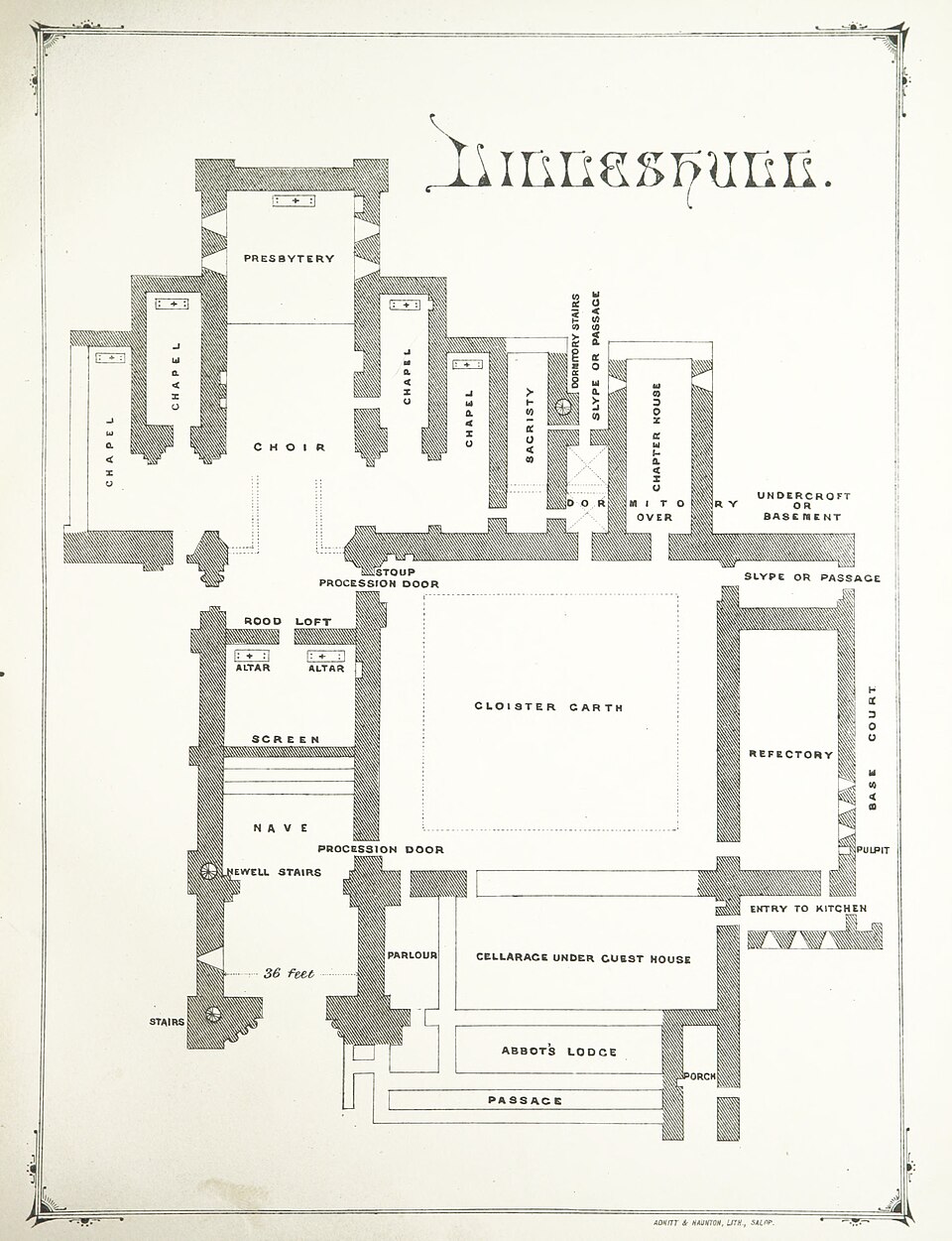 Lilleshall Lodge was used as the family’s residence in the area, until they moved to Lilleshall Old Hall in the village in the late 18th century. It appears to originally have been a hunting lodge in the abbey’s deer park rather than adjacent to the main abbey buildings. The building was demolished in about 1818.